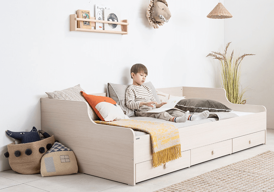 : 내 생각에는 꼼므 주니어의 최애 가구는 바로 침대 같다. 아이가 1명만 있는 집은 수납형 슈퍼싱글 침대를 구매하고 2명 있는 집은 2단 슬라이딩 침대를 구입하면 된다. 나라면 한 명만 있어도 가끔 같이 잠들기 위해 2단 슬라이딩 침대를 살 것 같다. 슈퍼싱글 사이즈라 어른이 사용하기에도 넉넉하고 아이의 친구나 친척이 오면 잠자리 걱정을 안 해도 될 것 같기 때문이다.